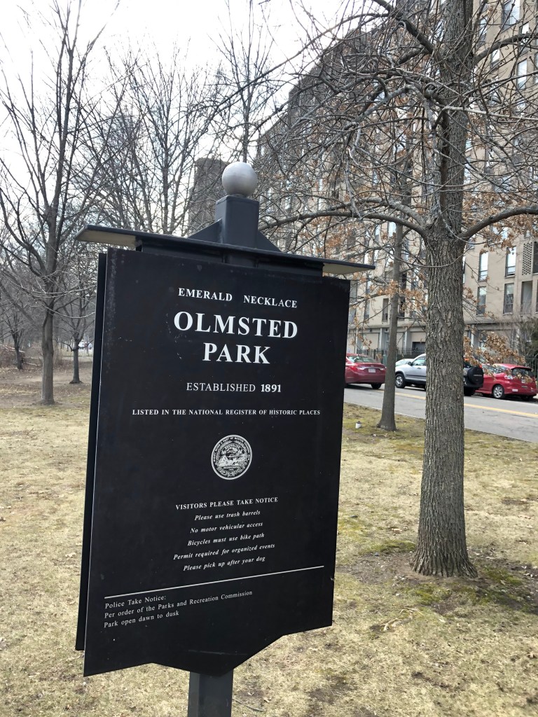 After lunch, I left the remote workers to work and set off walking through the series of greenways and parks they call the Emerald Necklace. Destination was the home of Frederick Law Olmsted, the landscape architect who created them as well as Central Park and hundreds of other iconic green spaces in America. Unfortunately, the home and visitor center was closed. Ended up talking to the maintenance man who knew a good bit about him. It was one of the first warm sunny days here, and people were out in droves enjoying it.