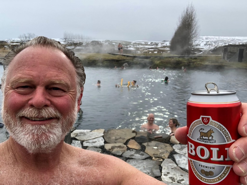 Speaking of thermal pools, our first stop was the Secret Lagoon. This pool is family owned and so much more intimate than the highly crowded and commercialized Blue Lagoon. We had two hours to soak in the soothing waters while getting to know fellow travelers and maybe (yes) enjoy an Icelandic beer!