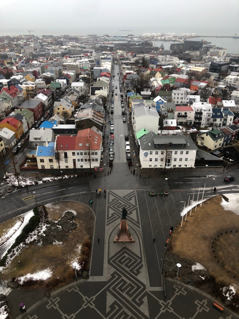 Tuesday was spent exploring Reykjavik. There was an on and off drizzle most of the morning. The coffee shop I wanted to check out happened to be near the landmark Lutheran church above the city, Hallgrimskirkja. Named after a 17th century hymn writer, the modern design is without ornamentation but striking in it’s soaring interior and bell tower. I took the lift up to the top of the bell tower for some great views of the city.
