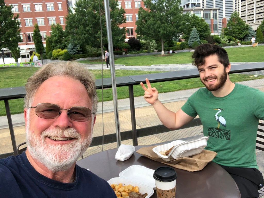 Quite a travel day… up at three am and out the door at four. Traffic jam on I-26 to the airport only added to the excitement! Navigating the Boston transit system to arrive at my son Alex’s place at 11. Pleasantly surprised to see my nephew Tom was still here, who I had not seen in awhile.